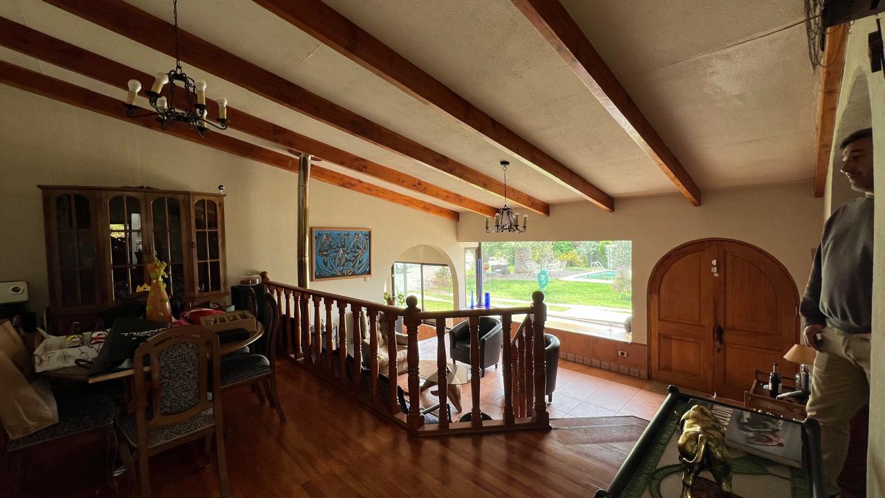 Gran parcela conformada por 2 terrenos de 900 m2 y 12.993 m2, cada uno con su rol. Ubicada en el sector El Patagual de Villa Alemana, con salida a la Autopista Troncal Sur. Distribución casa: – Primer nivel: 2 dormitorios, galería, baño, logia y subterráneo. – Segundo nivel: Living con estufa a leña. – Tercer nivel: Comedor, sala de estar, 3 dormitorios con el principal en suite, 2 baños, cocina amoblada con comedor de diario. Exterior: Piscina (5 x 10 m), quincho, bodega, amplios estacionamientos, 2 caniles, pozo, portón eléctrico, regadío automático, jardín con árboles frutales y autóctonos.